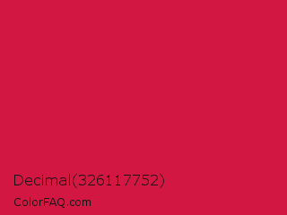 Decimal 326117752 Color is a normal red color and the nearest color is Crimson #dc143c. Hex code #d11742 and RGB value is rgb(209,23,66). In RGB color space, this color is composed of 82% red, 9% green, 26% blue, In CMYK color space, this color is composed of 0% cyan, 89% magenta, 68% yellow , 18% black , In HSL color space, this color has a hue angle of 346° , 80% saturation and 45% lightness.