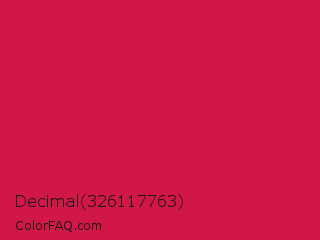 Decimal 326117763 Color is a normal red color and the nearest color is Crimson #dc143c. Hex code #d11747 and RGB value is rgb(209,23,71). In RGB color space, this color is composed of 82% red, 9% green, 28% blue, In CMYK color space, this color is composed of 0% cyan, 89% magenta, 66% yellow , 18% black , In HSL color space, this color has a hue angle of 345° , 80% saturation and 45% lightness.