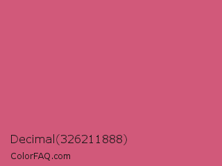 Decimal 326211888 Color is a normal rose color and the nearest color is Cinnamon Satin #cd607e. Hex code #d1597a and RGB value is rgb(209,89,122). In RGB color space, this color is composed of 82% red, 35% green, 48% blue, In CMYK color space, this color is composed of 0% cyan, 57% magenta, 42% yellow , 18% black , In HSL color space, this color has a hue angle of 344° , 57% saturation and 58% lightness.