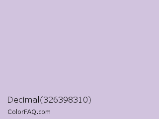 Decimal 326398310 Color is a very light purple color and the nearest color is Prelude #d0c0e5. Hex code #d1c3de and RGB value is rgb(209,195,222). In RGB color space, this color is composed of 82% red, 76% green, 87% blue, In CMYK color space, this color is composed of 6% cyan, 12% magenta, 0% yellow , 13% black , In HSL color space, this color has a hue angle of 271° , 29% saturation and 82% lightness.