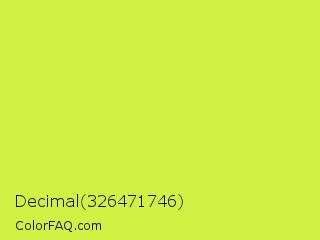 Decimal 326471746 Color is a normal lime color and the nearest color is Maximum Green Yellow #d9e650. Hex code #d1f242 and RGB value is rgb(209,242,66). In RGB color space, this color is composed of 82% red, 95% green, 26% blue, In CMYK color space, this color is composed of 14% cyan, 0% magenta, 73% yellow , 5% black , In HSL color space, this color has a hue angle of 71° , 87% saturation and 60% lightness.