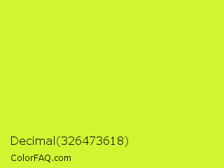 Decimal 326473618 Color is a normal lime color and the nearest color is Pear #d1e231. Hex code #d1f530 and RGB value is rgb(209,245,48). In RGB color space, this color is composed of 82% red, 96% green, 19% blue, In CMYK color space, this color is composed of 15% cyan, 0% magenta, 80% yellow , 4% black , In HSL color space, this color has a hue angle of 71° , 91% saturation and 57% lightness.