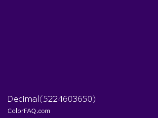 Decimal 5224603650 Color is a very dark purple color and the nearest color is Deep Violet #330066. Hex code #350362 and RGB value is rgb(53,3,98). In RGB color space, this color is composed of 21% red, 1% green, 38% blue, In CMYK color space, this color is composed of 46% cyan, 97% magenta, 0% yellow , 62% black , In HSL color space, this color has a hue angle of 272° , 94% saturation and 20% lightness.