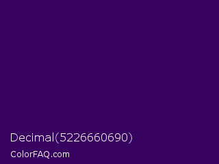 Decimal 5226660690 Color is a very dark purple color and the nearest color is Deep Violet #330066. Hex code #380260 and RGB value is rgb(56,2,96). In RGB color space, this color is composed of 22% red, 1% green, 38% blue, In CMYK color space, this color is composed of 42% cyan, 98% magenta, 0% yellow , 62% black , In HSL color space, this color has a hue angle of 274° , 96% saturation and 19% lightness.