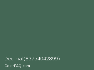 Decimal 83754042899 Color is a normal green color and the nearest color is Mineral Green #3f5d53. Hex code #446755 and RGB value is rgb(68,103,85). In RGB color space, this color is composed of 27% red, 40% green, 33% blue, In CMYK color space, this color is composed of 34% cyan, 0% magenta, 17% yellow , 60% black , In HSL color space, this color has a hue angle of 149° , 20% saturation and 34% lightness.
