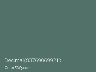 Decimal 83769069921 Color is a normal cyan color and the nearest color is Cutty Sark #507672. Hex code #517169 and RGB value is rgb(81,113,105). In RGB color space, this color is composed of 32% red, 44% green, 41% blue, In CMYK color space, this color is composed of 28% cyan, 0% magenta, 7% yellow , 56% black , In HSL color space, this color has a hue angle of 165° , 16% saturation and 38% lightness.
