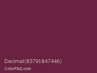Decimal 83791847446 Color is a dark rose color and the nearest color is Tawny Port #692545. Hex code #692340 and RGB value is rgb(105,35,64). In RGB color space, this color is composed of 41% red, 14% green, 25% blue, In CMYK color space, this color is composed of 0% cyan, 67% magenta, 39% yellow , 59% black , In HSL color space, this color has a hue angle of 335° , 50% saturation and 27% lightness.