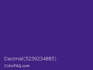 Decimal 5239234885 Color is a normal indigo color and the nearest color is Meteorite #3c1f76. Hex code #412181 and RGB value is rgb(65,33,129). In RGB color space, this color is composed of 25% red, 13% green, 51% blue, In CMYK color space, this color is composed of 50% cyan, 74% magenta, 0% yellow , 49% black , In HSL color space, this color has a hue angle of 260° , 59% saturation and 32% lightness.