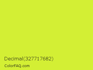 Decimal 327717682 Color is a normal yellow color and the nearest color is Pear #d1e231. Hex code #d3ef34 and RGB value is rgb(211,239,52). In RGB color space, this color is composed of 83% red, 94% green, 20% blue, In CMYK color space, this color is composed of 12% cyan, 0% magenta, 78% yellow , 6% black , In HSL color space, this color has a hue angle of 69° , 85% saturation and 57% lightness.