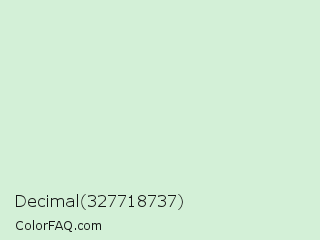 Decimal 327718737 Color is a very light green color and the nearest color is Zanah #daecd6. Hex code #d3f0d7 and RGB value is rgb(211,240,215). In RGB color space, this color is composed of 83% red, 94% green, 84% blue, In CMYK color space, this color is composed of 12% cyan, 0% magenta, 10% yellow , 6% black , In HSL color space, this color has a hue angle of 128° , 49% saturation and 88% lightness.