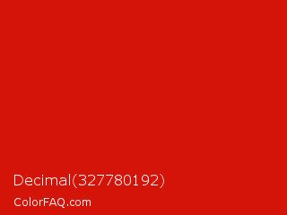 Decimal 327780192 Color is a normal red color and the nearest color is Venetian Red #c80815. Hex code #d41408 and RGB value is rgb(212,20,8). In RGB color space, this color is composed of 83% red, 8% green, 3% blue, In CMYK color space, this color is composed of 0% cyan, 91% magenta, 96% yellow , 17% black , In HSL color space, this color has a hue angle of 4° , 93% saturation and 43% lightness.