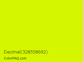 Decimal 328558692 Color is a normal yellow color and the nearest color is Volt #ceff00. Hex code #d4f700 and RGB value is rgb(212,247,0). In RGB color space, this color is composed of 83% red, 97% green, 0% blue, In CMYK color space, this color is composed of 14% cyan, 0% magenta, 100% yellow , 3% black , In HSL color space, this color has a hue angle of 69° , 100% saturation and 48% lightness.