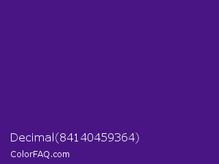 Decimal 84140459364 Color is a dark violet color and the nearest color is Pixie Powder #391285. Hex code #491584 and RGB value is rgb(73,21,132). In RGB color space, this color is composed of 29% red, 8% green, 52% blue, In CMYK color space, this color is composed of 45% cyan, 84% magenta, 0% yellow , 48% black , In HSL color space, this color has a hue angle of 268° , 73% saturation and 30% lightness.