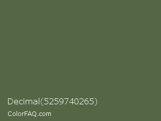 Decimal 5259740265 Color is a normal green color and the nearest color is Axolotl #4e6649. Hex code #556645 and RGB value is rgb(85,102,69). In RGB color space, this color is composed of 33% red, 40% green, 27% blue, In CMYK color space, this color is composed of 17% cyan, 0% magenta, 32% yellow , 60% black , In HSL color space, this color has a hue angle of 91° , 19% saturation and 34% lightness.