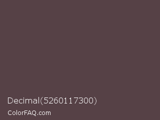 Decimal 5260117300 Color is a dark red color and the nearest color is Emperor #514649. Hex code #564146 and RGB value is rgb(86,65,70). In RGB color space, this color is composed of 34% red, 25% green, 27% blue, In CMYK color space, this color is composed of 0% cyan, 24% magenta, 19% yellow , 66% black , In HSL color space, this color has a hue angle of 346° , 14% saturation and 30% lightness.