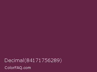 Decimal 84171756289 Color is a dark rose color and the nearest color is Tawny Port #692545. Hex code #642245 and RGB value is rgb(100,34,69). In RGB color space, this color is composed of 39% red, 13% green, 27% blue, In CMYK color space, this color is composed of 0% cyan, 66% magenta, 31% yellow , 61% black , In HSL color space, this color has a hue angle of 328° , 49% saturation and 26% lightness.