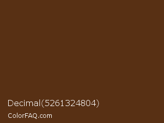 Decimal 5261324804 Color is a very dark orange color and the nearest color is Jambalaya #5b3013. Hex code #583014 and RGB value is rgb(88,48,20). In RGB color space, this color is composed of 35% red, 19% green, 8% blue, In CMYK color space, this color is composed of 0% cyan, 45% magenta, 77% yellow , 65% black , In HSL color space, this color has a hue angle of 25° , 63% saturation and 21% lightness.