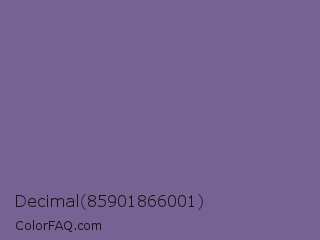 Decimal 85901866001 Color is a normal violet color and the nearest color is Rum #796989. Hex code #766293 and RGB value is rgb(118,98,147). In RGB color space, this color is composed of 46% red, 38% green, 58% blue, In CMYK color space, this color is composed of 20% cyan, 33% magenta, 0% yellow , 42% black , In HSL color space, this color has a hue angle of 264° , 20% saturation and 48% lightness.