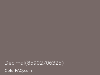 Decimal 85902706325 Color is a normal red color and the nearest color is Sandstone #796d62. Hex code #776967 and RGB value is rgb(119,105,103). In RGB color space, this color is composed of 47% red, 41% green, 40% blue, In CMYK color space, this color is composed of 0% cyan, 12% magenta, 13% yellow , 53% black , In HSL color space, this color has a hue angle of 7° , 7% saturation and 44% lightness.