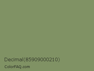 Decimal 85909000210 Color is a normal green color and the nearest color is Avocado Pulp #888d65. Hex code #809264 and RGB value is rgb(128,146,100). In RGB color space, this color is composed of 50% red, 57% green, 39% blue, In CMYK color space, this color is composed of 12% cyan, 0% magenta, 32% yellow , 43% black , In HSL color space, this color has a hue angle of 83° , 19% saturation and 48% lightness.