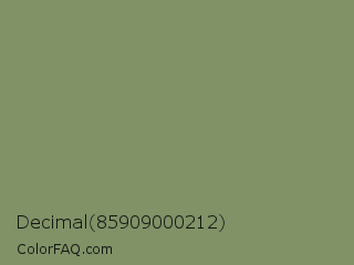 Decimal 85909000212 Color is a normal green color and the nearest color is Avocado Pulp #888d65. Hex code #809266 and RGB value is rgb(128,146,102). In RGB color space, this color is composed of 50% red, 57% green, 40% blue, In CMYK color space, this color is composed of 12% cyan, 0% magenta, 30% yellow , 43% black , In HSL color space, this color has a hue angle of 85° , 18% saturation and 49% lightness.
