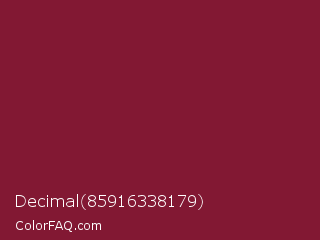Decimal 85916338179 Color is a dark red color and the nearest color is Claret #7f1734. Hex code #821833 and RGB value is rgb(130,24,51). In RGB color space, this color is composed of 51% red, 9% green, 20% blue, In CMYK color space, this color is composed of 0% cyan, 82% magenta, 61% yellow , 49% black , In HSL color space, this color has a hue angle of 345° , 69% saturation and 30% lightness.