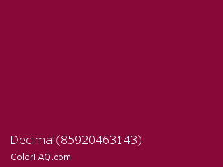 Decimal 85920463143 Color is a dark rose color and the nearest color is Siren #7a013a. Hex code #880837 and RGB value is rgb(136,8,55). In RGB color space, this color is composed of 53% red, 3% green, 22% blue, In CMYK color space, this color is composed of 0% cyan, 94% magenta, 60% yellow , 47% black , In HSL color space, this color has a hue angle of 338° , 89% saturation and 28% lightness.