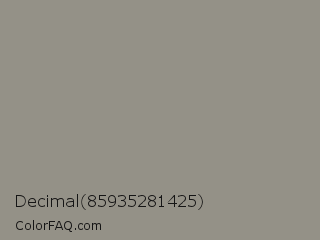 Decimal 85935281425 Color is a normal yellow color and the nearest color is Stack #8a8f8a. Hex code #949187 and RGB value is rgb(148,145,135). In RGB color space, this color is composed of 58% red, 57% green, 53% blue, In CMYK color space, this color is composed of 0% cyan, 2% magenta, 9% yellow , 42% black , In HSL color space, this color has a hue angle of 46° , 6% saturation and 55% lightness.