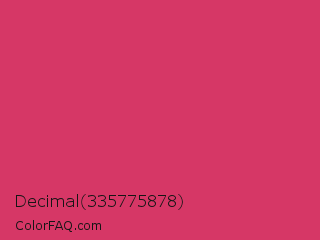 Decimal 335775878 Color is a normal rose color and the nearest color is Cerise Red #de3163. Hex code #d63766 and RGB value is rgb(214,55,102). In RGB color space, this color is composed of 84% red, 22% green, 40% blue, In CMYK color space, this color is composed of 0% cyan, 74% magenta, 52% yellow , 16% black , In HSL color space, this color has a hue angle of 342° , 66% saturation and 53% lightness.