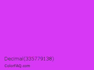 Decimal 335779138 Color is a normal purple color and the nearest color is Steel Pink #cc33cc. Hex code #d639f6 and RGB value is rgb(214,57,246). In RGB color space, this color is composed of 84% red, 22% green, 96% blue, In CMYK color space, this color is composed of 13% cyan, 77% magenta, 0% yellow , 4% black , In HSL color space, this color has a hue angle of 290° , 91% saturation and 59% lightness.