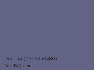 Decimal 5376250480 Color is a normal blue color and the nearest color is Dolphin #646077. Hex code #636386 and RGB value is rgb(99,99,134). In RGB color space, this color is composed of 39% red, 39% green, 53% blue, In CMYK color space, this color is composed of 26% cyan, 26% magenta, 0% yellow , 47% black , In HSL color space, this color has a hue angle of 240° , 15% saturation and 46% lightness.