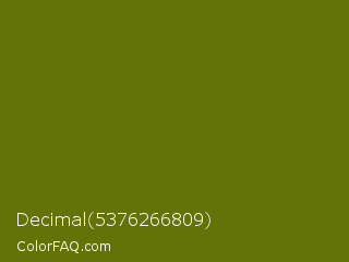 Decimal 5376266809 Color is a dark yellow color and the nearest color is Olivetone #716e10. Hex code #637307 and RGB value is rgb(99,115,7). In RGB color space, this color is composed of 39% red, 45% green, 3% blue, In CMYK color space, this color is composed of 14% cyan, 0% magenta, 94% yellow , 55% black , In HSL color space, this color has a hue angle of 69° , 89% saturation and 24% lightness.