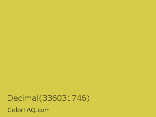 Decimal 336031746 Color is a normal yellow color and the nearest color is Wattle #dcd747. Hex code #d6cc4a and RGB value is rgb(214,204,74). In RGB color space, this color is composed of 84% red, 80% green, 29% blue, In CMYK color space, this color is composed of 0% cyan, 5% magenta, 65% yellow , 16% black , In HSL color space, this color has a hue angle of 56° , 63% saturation and 56% lightness.