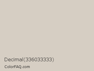 Decimal 336033333 Color is a light orange color and the nearest color is Swirl #d3cdc5. Hex code #d6cec3 and RGB value is rgb(214,206,195). In RGB color space, this color is composed of 84% red, 81% green, 76% blue, In CMYK color space, this color is composed of 0% cyan, 4% magenta, 9% yellow , 16% black , In HSL color space, this color has a hue angle of 35° , 19% saturation and 80% lightness.