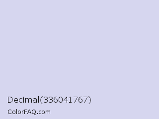 Decimal 336041767 Color is a very light blue color and the nearest color is Moon Raker #d6cef6. Hex code #d6d6ef and RGB value is rgb(214,214,239). In RGB color space, this color is composed of 84% red, 84% green, 94% blue, In CMYK color space, this color is composed of 10% cyan, 10% magenta, 0% yellow , 6% black , In HSL color space, this color has a hue angle of 240° , 44% saturation and 89% lightness.