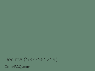 Decimal 5377561219 Color is a normal green color and the nearest color is Viridian Green #678975. Hex code #658673 and RGB value is rgb(101,134,115). In RGB color space, this color is composed of 40% red, 53% green, 45% blue, In CMYK color space, this color is composed of 25% cyan, 0% magenta, 14% yellow , 47% black , In HSL color space, this color has a hue angle of 145° , 14% saturation and 46% lightness.