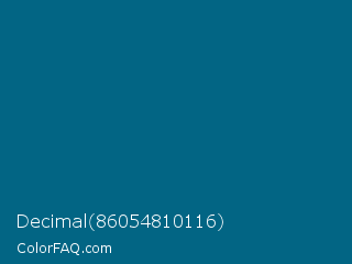 Decimal 86054810116 Color is a dark blue color and the nearest color is Orient #015e85. Hex code #026584 and RGB value is rgb(2,101,132). In RGB color space, this color is composed of 1% red, 40% green, 52% blue, In CMYK color space, this color is composed of 98% cyan, 23% magenta, 0% yellow , 48% black , In HSL color space, this color has a hue angle of 194° , 97% saturation and 26% lightness.