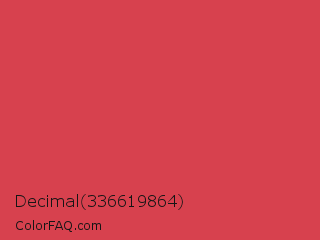 Decimal 336619864 Color is a normal red color and the nearest color is English Vermillion #cc474b. Hex code #d7414e and RGB value is rgb(215,65,78). In RGB color space, this color is composed of 84% red, 25% green, 31% blue, In CMYK color space, this color is composed of 0% cyan, 70% magenta, 64% yellow , 16% black , In HSL color space, this color has a hue angle of 355° , 65% saturation and 55% lightness.