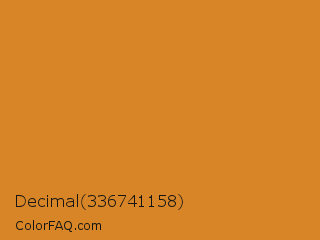 Decimal 336741158 Color is a normal orange color and the nearest color is Brandy Punch #cd8429. Hex code #d78526 and RGB value is rgb(215,133,38). In RGB color space, this color is composed of 84% red, 52% green, 15% blue, In CMYK color space, this color is composed of 0% cyan, 38% magenta, 82% yellow , 16% black , In HSL color space, this color has a hue angle of 32° , 70% saturation and 50% lightness.