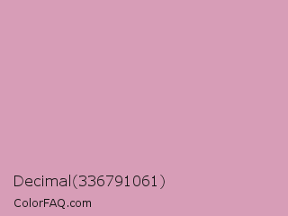 Decimal 336791061 Color is a light rose color and the nearest color is Careys Pink #d29eaa. Hex code #d79db7 and RGB value is rgb(215,157,183). In RGB color space, this color is composed of 84% red, 62% green, 72% blue, In CMYK color space, this color is composed of 0% cyan, 27% magenta, 15% yellow , 16% black , In HSL color space, this color has a hue angle of 333° , 42% saturation and 73% lightness.