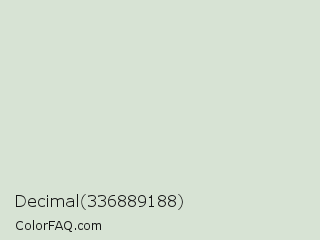 Decimal 336889188 Color is a very light green color and the nearest color is Surf Crest #cfe5d2. Hex code #d7e3d4 and RGB value is rgb(215,227,212). In RGB color space, this color is composed of 84% red, 89% green, 83% blue, In CMYK color space, this color is composed of 5% cyan, 0% magenta, 7% yellow , 11% black , In HSL color space, this color has a hue angle of 108° , 21% saturation and 86% lightness.