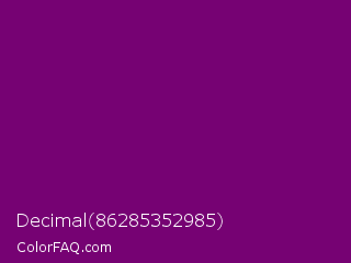 Decimal 86285352985 Color is a dark magenta color and the nearest color is Patriarch #800080. Hex code #760273 and RGB value is rgb(118,2,115). In RGB color space, this color is composed of 46% red, 1% green, 45% blue, In CMYK color space, this color is composed of 0% cyan, 98% magenta, 3% yellow , 54% black , In HSL color space, this color has a hue angle of 302° , 97% saturation and 24% lightness.