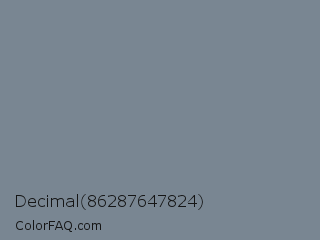 Decimal 86287647824 Color is a normal blue color and the nearest color is Light Slate Gray #778899. Hex code #798692 and RGB value is rgb(121,134,146). In RGB color space, this color is composed of 47% red, 53% green, 57% blue, In CMYK color space, this color is composed of 17% cyan, 8% magenta, 0% yellow , 43% black , In HSL color space, this color has a hue angle of 209° , 10% saturation and 52% lightness.