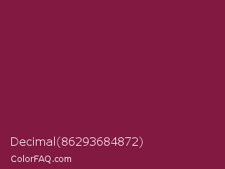 Decimal 86293684872 Color is a dark rose color and the nearest color is Claret #7f1734. Hex code #821940 and RGB value is rgb(130,25,64). In RGB color space, this color is composed of 51% red, 10% green, 25% blue, In CMYK color space, this color is composed of 0% cyan, 81% magenta, 51% yellow , 49% black , In HSL color space, this color has a hue angle of 338° , 68% saturation and 30% lightness.