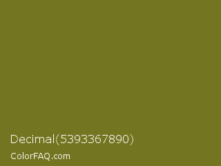 Decimal 5393367890 Color is a dark yellow color and the nearest color is Crete #737829. Hex code #737520 and RGB value is rgb(115,117,32). In RGB color space, this color is composed of 45% red, 46% green, 13% blue, In CMYK color space, this color is composed of 2% cyan, 0% magenta, 73% yellow , 54% black , In HSL color space, this color has a hue angle of 61° , 57% saturation and 29% lightness.