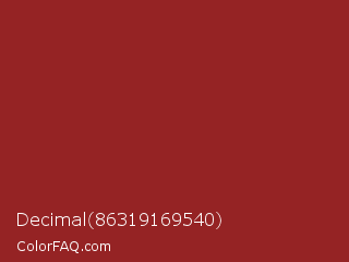 Decimal 86319169540 Color is a normal red color and the nearest color is Vivid Auburn #922724. Hex code #952324 and RGB value is rgb(149,35,36). In RGB color space, this color is composed of 58% red, 14% green, 14% blue, In CMYK color space, this color is composed of 0% cyan, 77% magenta, 76% yellow , 42% black , In HSL color space, this color has a hue angle of 359° , 62% saturation and 36% lightness.