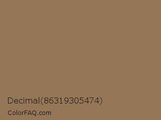 Decimal 86319305474 Color is a normal orange color and the nearest color is Pale Brown #987654. Hex code #957656 and RGB value is rgb(149,118,86). In RGB color space, this color is composed of 58% red, 46% green, 34% blue, In CMYK color space, this color is composed of 0% cyan, 21% magenta, 42% yellow , 42% black , In HSL color space, this color has a hue angle of 30° , 27% saturation and 46% lightness.