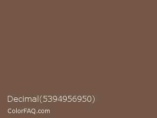 Decimal 5394956950 Color is a normal orange color and the nearest color is Tobacco Brown #715d47. Hex code #755948 and RGB value is rgb(117,89,72). In RGB color space, this color is composed of 46% red, 35% green, 28% blue, In CMYK color space, this color is composed of 0% cyan, 24% magenta, 38% yellow , 54% black , In HSL color space, this color has a hue angle of 23° , 24% saturation and 37% lightness.