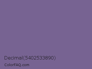 Decimal 5402533890 Color is a normal violet color and the nearest color is Rum #796989. Hex code #776392 and RGB value is rgb(119,99,146). In RGB color space, this color is composed of 47% red, 39% green, 57% blue, In CMYK color space, this color is composed of 18% cyan, 32% magenta, 0% yellow , 43% black , In HSL color space, this color has a hue angle of 266° , 19% saturation and 48% lightness.