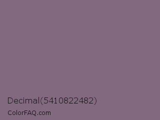 Decimal 5410822482 Color is a normal magenta color and the nearest color is Chinese Violet #856088. Hex code #836980 and RGB value is rgb(131,105,128). In RGB color space, this color is composed of 51% red, 41% green, 50% blue, In CMYK color space, this color is composed of 0% cyan, 20% magenta, 2% yellow , 49% black , In HSL color space, this color has a hue angle of 307° , 11% saturation and 46% lightness.